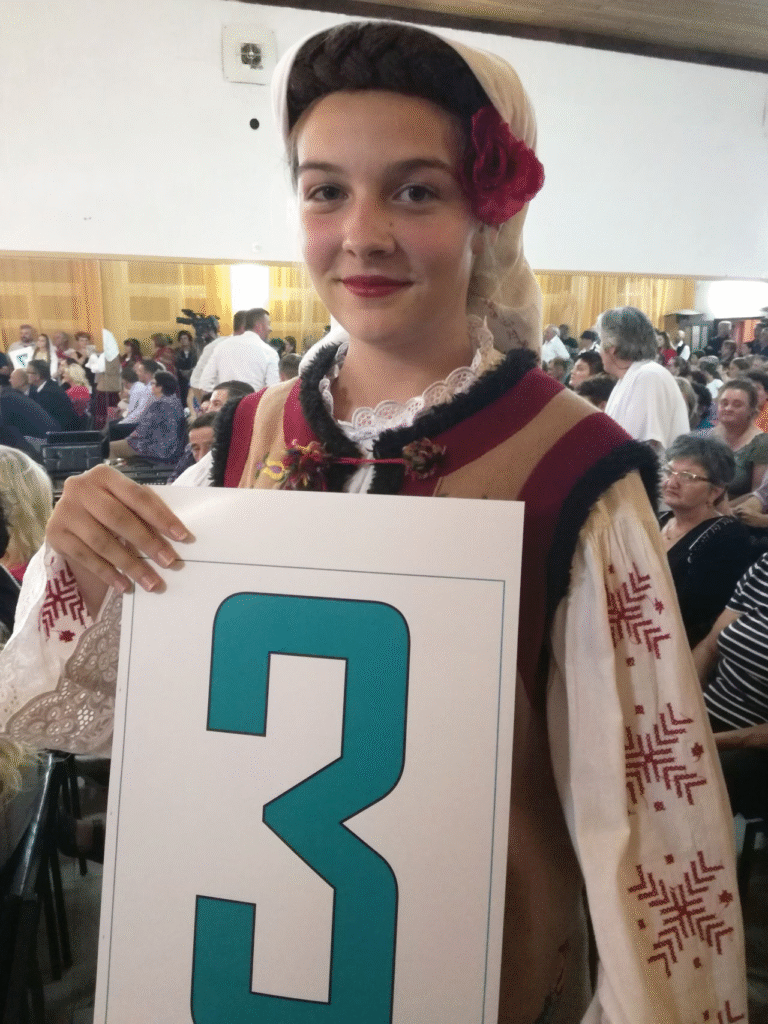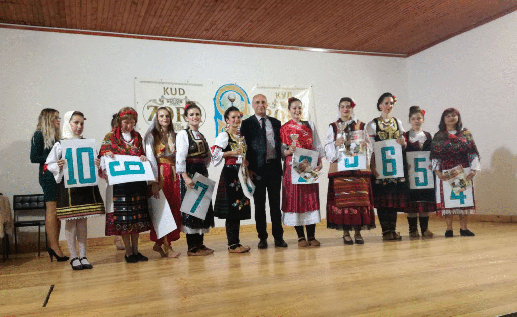 U takmičenju za najljepšu djevojku u narodnoj nošnji učesvovale su po dvije djevojke iz svakog Društva. Ove godine titulu najljepše odnijela je djevojka iz SPKD Prosvjeta Srednja Slatina (R. Srpska)- Teodora Đurić, drugo mjesto je osvojila članica KUU-e Zora iz Silaša- Vanja Maletić, a treće mjesto djevojka iz SKD Prosvjeta- Pododbor Zagreb- Milijana Nožinić. Za prvo mjesto dodijeljena je lenta i diploma, za drugo i treće mjesto diplome, a ostale takmičarke dobile su zahvalnice za učešće i veliki aplauz. Predsjednik komisije za izbor najljepše djevojke- Srđan Jeremić, predsjednik ZVO Vukovar objavio je rezultat takmičenja, čestitao učesnicama i obratio se organizatoru , učesnicima i publici kratkim govorom.