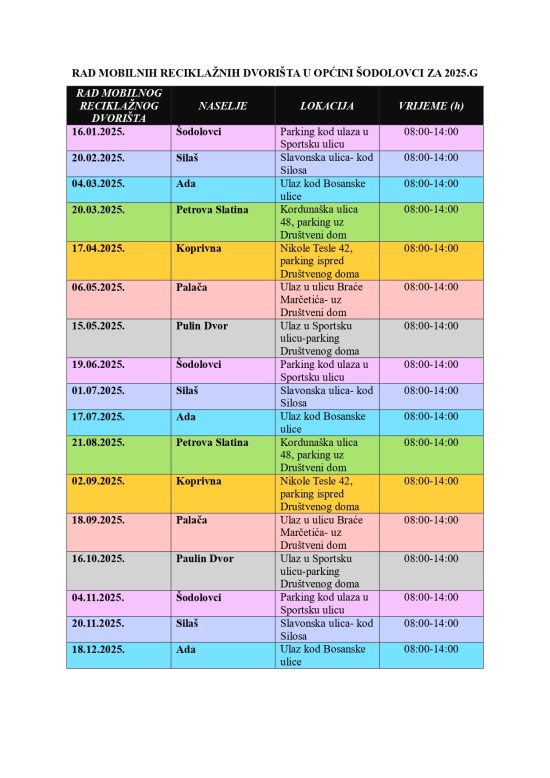 Rad mobilnih reciklažnih dvorišta u općini Šodolovci za 2025. g.
