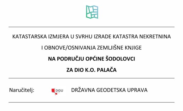 KATASTARSKA IZMJERA U SVRHU IZRADE KATASTRA NEKRETNINA I OBNOVE/OSNIVANJA ZEMLJIŠNE KNJIGE NA PODRUČJU OPĆINE ŠODOLOVCI ZA DIO K.O.PALAČA